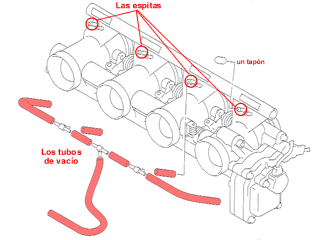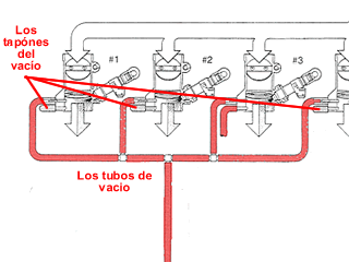 la conexión al vacío: hay varias opciones. a) Puedes colocar el codo directamente encima de una de las espitas en la culata ![]() ![]() pincha para ampliar las imagenes |