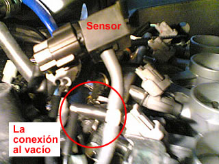 b) Otra conexión al vacío: la pieza "T" en el tubo de vacío entre el IAP sensor y las toberas.![]() |