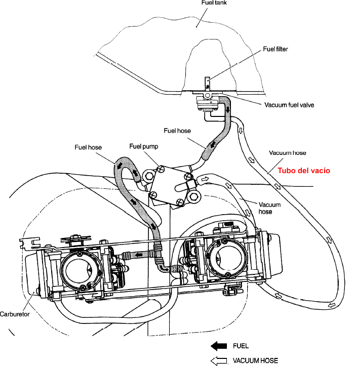 2003+ SV650S & SV1000 motor de inyección: hay una toma de vacío debajo de cada tobera. Puedes utilizar cualquiera de los dos.. | |