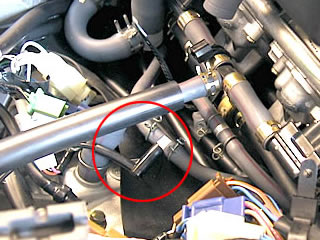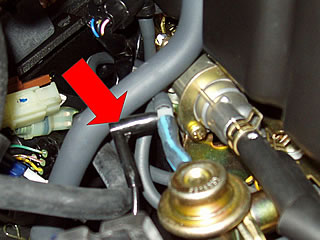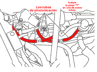| 1999-2002 motor con carburadores, la conexión al vacío. Hay tubos de vacío al cada tobera. Corta uno e instala la pieza "T". ![]() |