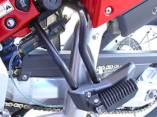 | Touring Kit: La instalación del Touring Kit es más complicada de lo normal y por eso no lo recomendamos para esta moto. a) El guardabarros tiene una forma irregular y es necesario reforzarlo para poder montarlo bien. b) Es muy difícil proteger los tubos frente al calor del tubo de escape y corren el riesgo de derretirse. ![]() ![]() |