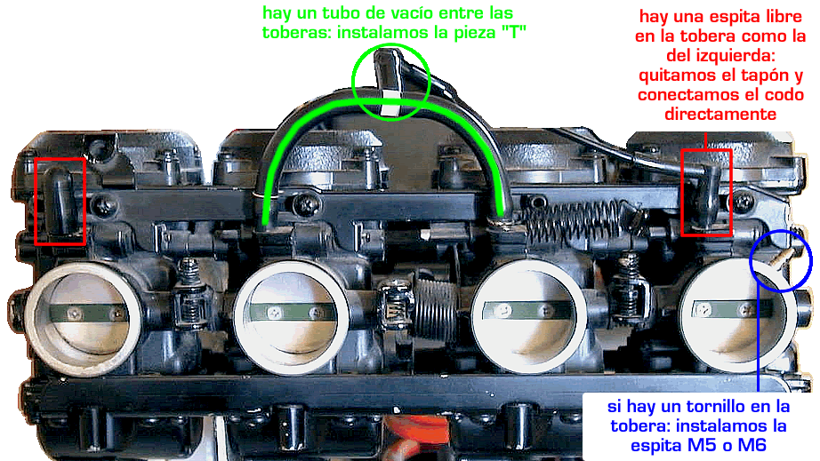 de inyección. Si necesitas información específica para tu moto, consulta "Ayuda técnica". Si hay algo que no comprendes, ponte en contacto con nosotros. ¿Cómo se conecta al vacío?Todos los motores crean un vacío cuando están en marcha